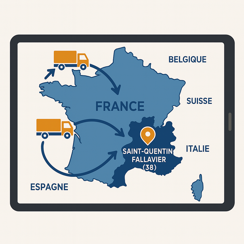 Basés à Saint-Quentin-Fallavier (Isère – 38), nous desservons toute la région Rhône-Alpes • la France entière • les pays frontaliers (Italie, Suisse, Espagne, Belgique)
